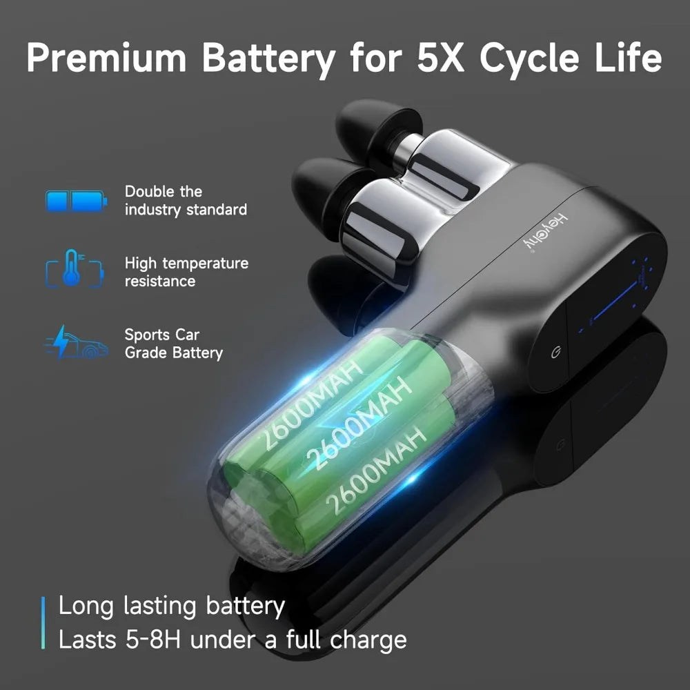 Double-Head Design – Includes two different massage heads for varying intensity levels and target areas
