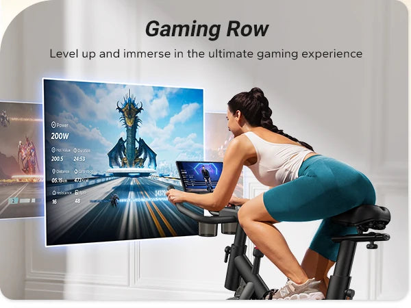 Why Choose MERACH: Game Riding increases the fun of exercise, and the upgraded spring stationary electric bike for adults increases the shock absorption effect and reduces exercise pain. The double-slot water bottle holder can not only replenish water at any time, but store personal belongings