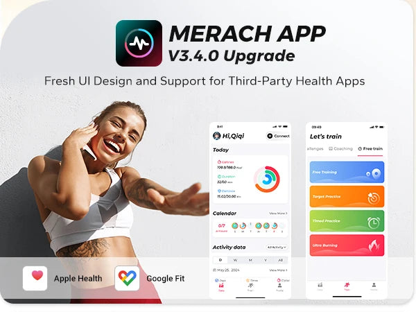 Merach Self-Developed APP: Elevate your fitness with the bluetooth exercise bike, equipped with Merach and FantomFite apps. Track real-time metrics like distance, time, calories, and BPM, and enjoy compatibility with KINOMAP and Zwift. Sync your data with Google Fit and Apple Health for seamless tracking